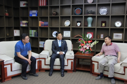 在讲坛开始前,副校长程博闻在行政中心亲切会见了我校89级校友张耿。程校长详细询问了张耿的工作、学习、生活情况,就他所在公司同学校进行产学研合作进行了深入交流,并对他专程参加首届面向毕业生校友讲坛表示感谢,希望其今后继续关心母校的发展,为社会做出更大的贡献。