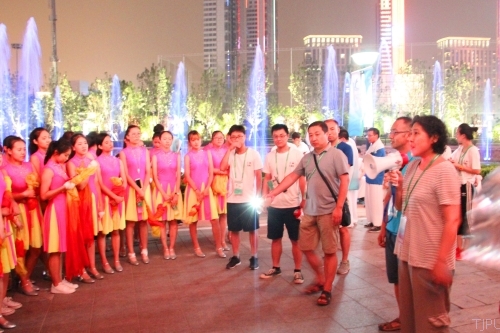 随着第十三届全运会开幕式的临近,我校全运会开幕式文体展演学生志愿演员们的排练工作正在紧张有序进行。8月12日晚,我校党委书记连洁、党委副书记刘亚男来到奥林匹克中心体育场,亲切看望慰问我校学生志愿演员,并与全运会开闭幕式文体展演部部长刘春雷共同观看了我校在“第二篇章”中的带装排演情况。