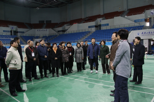 在学校体育馆和游泳馆,工作人员详细介绍了两馆采用的地热、太阳能等绿色能源,大家认为采用绿色能源节能又环保,这些经验可以很好地应用推广。先进完善的体育设施让大家流连忘返,大家也为学校在各项体育赛事中所取得的优异成绩表示祝贺。